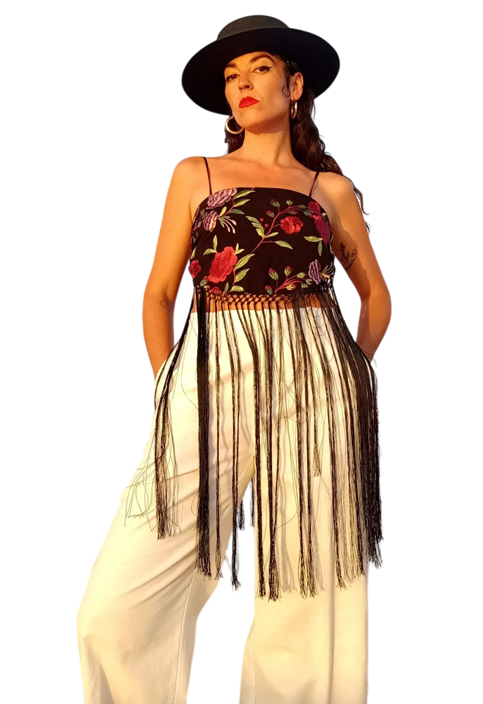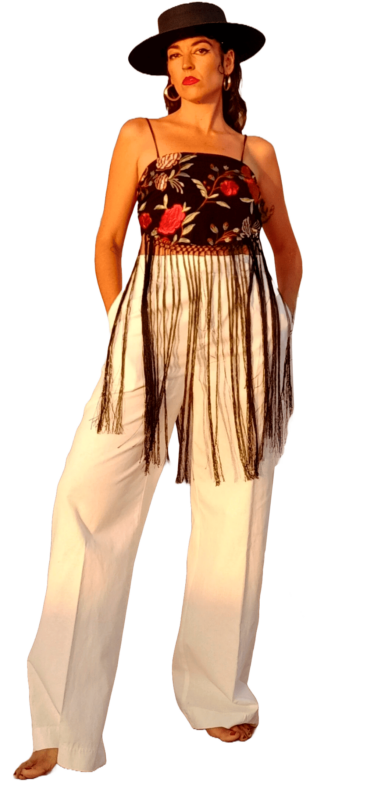 Prenda exclusiva y artesana que reinventa el mantón tradicional, convirtiéndolo en una pieza versátil, elegante y con poderío.