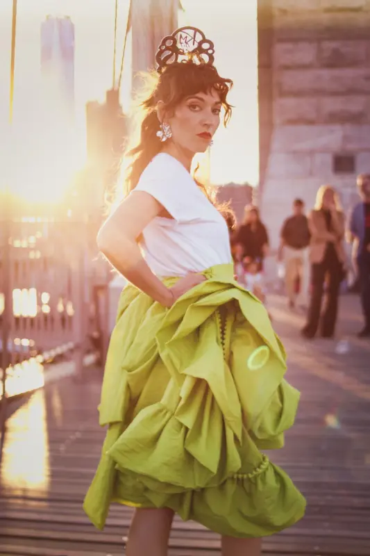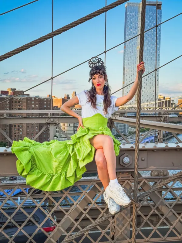 Con esta colección, creada a fuego lento, irrumpo en la ciudad que no duerme, reivindicando así mi forma de ver la moda. De la máquina de coser, a las industrias sin alma. La similitud de las voces negras del flamenco y del blues. Del puente de Triana, al puente de Brooklyn. Los elementos tradicionales como la moda más trasgresora.